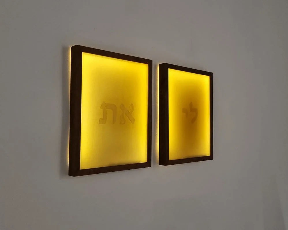 Li Chen’s father is a central, meaningful figure in her life. He is a present, caring and attentive father. Her childhood environment was the sign factory he managed. There, he demonstrated and explained with endless patience about the work, the materials, the neon signs, the sheet metal and the plexiglass (in the 1990s he produced the guitar for the. Hardrock Café at Dizengoff Center). ֿThe passion for working with materials is a multigenerational legacy. Her grandfather taught her father welding and how to work with sculptural materials, molds and casts. During her studies in the Department of Ceramics and Glass Design at Bezalel, her father helped her create letters, boxes, and frames, as well as helped with the installation of exhibitions. Over the years, Chen collected sentences he would repeat and notes he would leave for her before he went to work: “Stop buying tights, but don’t save on anything connected to your art.” “I fixed your car.” “I bought you fish and a few things.” “I can’t sleep because of you.” “Enough”. “Come home.” “You got your grandfather’s hands.” “You are my whole world.” “The world sucks, stop taking things personally.” “My whole life he has been beside me, making sure I have everything I need. He asks, shows interest, helps and blurts out caring sentences which are sometimes even annoying but usually funny,” says Chen. His words are so much a part of her it is as if they are tattooed on her skin. The flexible character, texture, and colour of the latex material in her works are reminiscent of human skin and represent the essence of their close relationship. The words are imprinted on the material as a reminder that references the sign factory. Positioning the work in the form of a blanket and a floor lamp are reminiscent of a warm,well-lit home. Her father named her “Li-at” after his own mother Leah. At the age of 20, she shortened her name to “Li”, as a symbolic act of embarking on her own independent path.